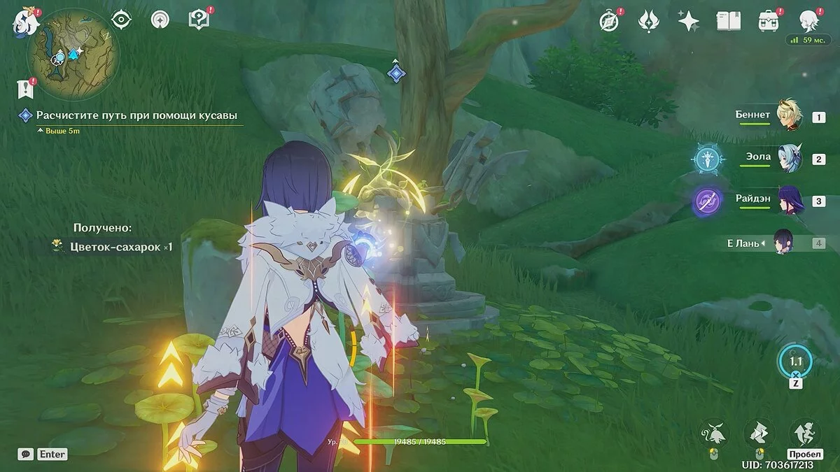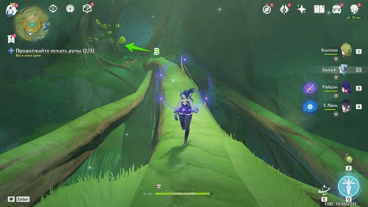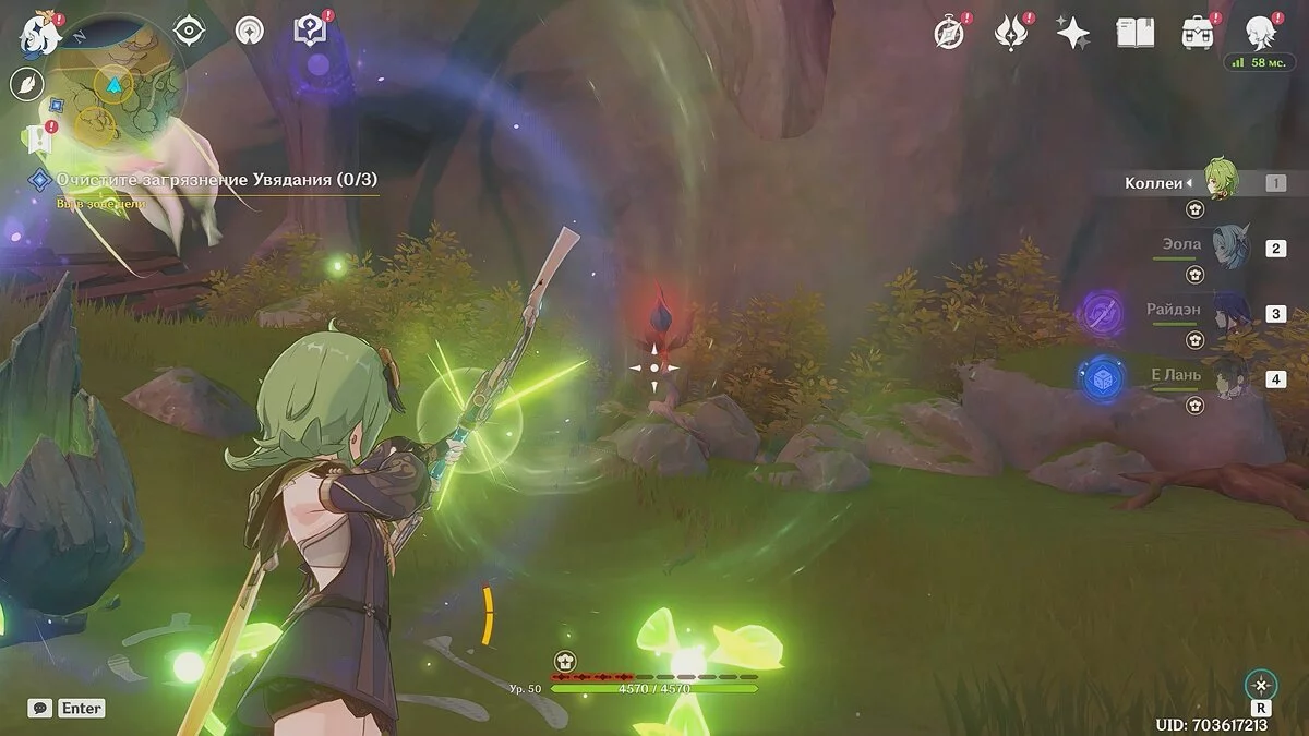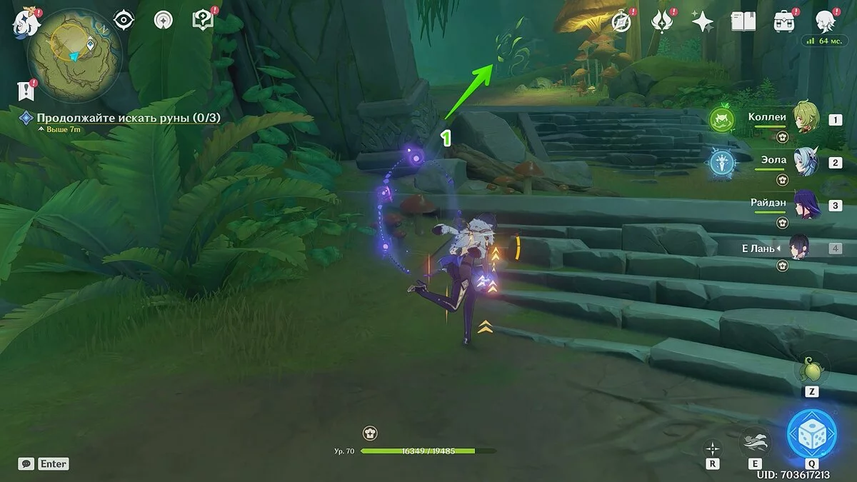 На входе подберите дендрокул и примените стихию Дендро на бутоне, чтобы создать четырёхлистные символы.