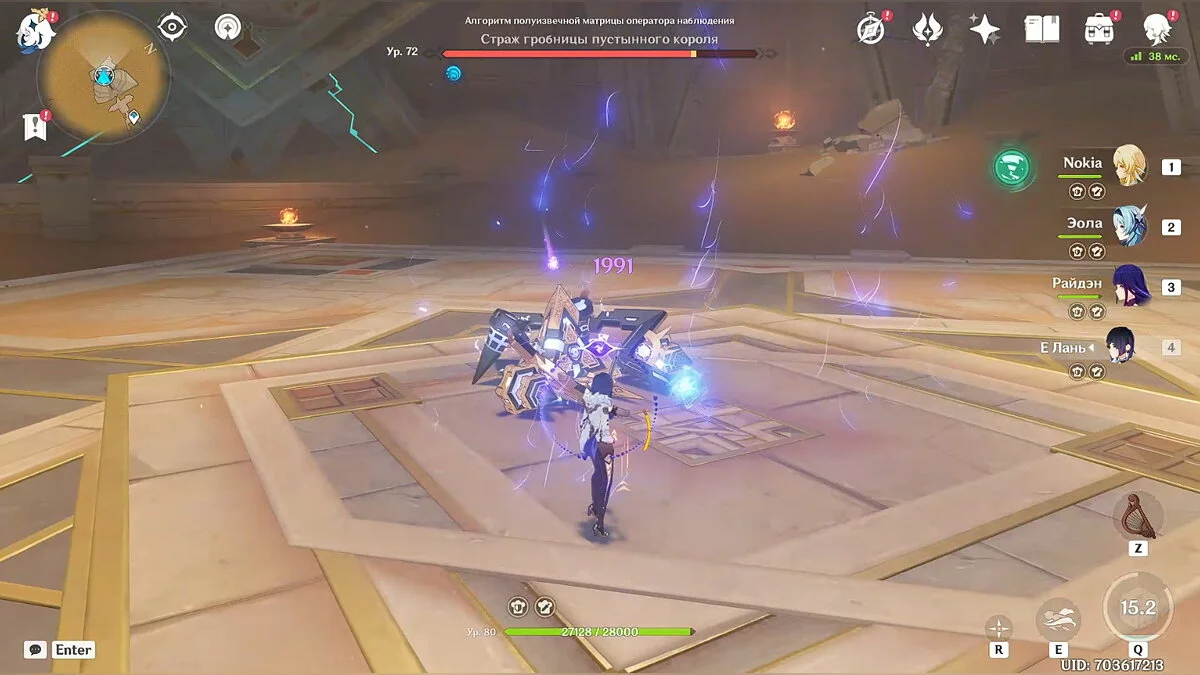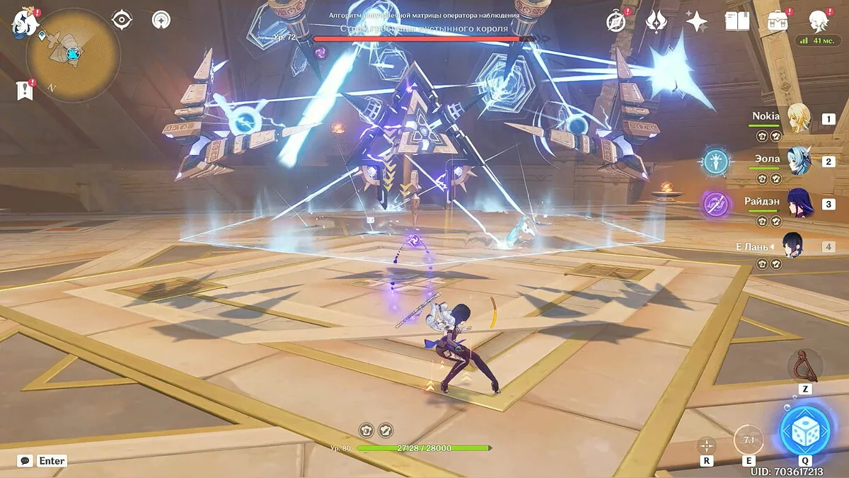 Когда босс находится на арене, атакуйте его умениями основного персонажа. Используйте навыки героев поддержки и лечитесь при необходимости. Не забывайте уклоняться от ударов и заклинаний Стража.