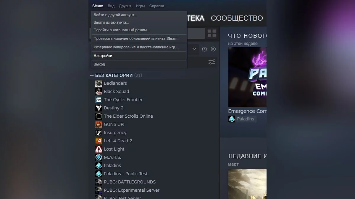 - Откройте Steam и перейдите в «Настройки», нажав кнопку Steam в левом верхнем углу экрана;