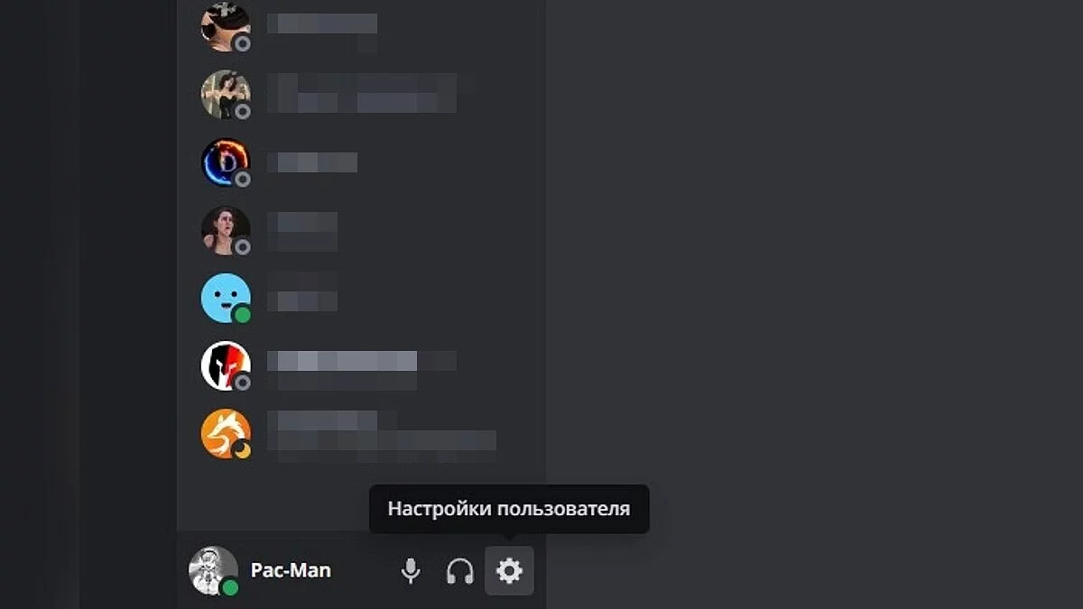 - Запустите Discord и нажмите иконку шестеренки в левом нижнем углу экрана;