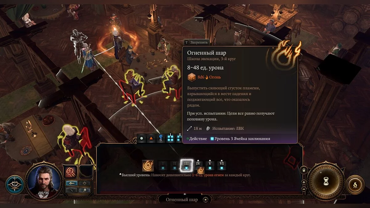 Уровень ячеек — это, простыми словами, урон от вашего заклинания. То, насколько опасным оно будет. Например, «Огненный шар», заклинание 3-го уровня, кастуется при помощи 3 ячейки и наносит 8к6 урона. Но если скастовать тот же спелл 4-ой ячейкой, то урон увеличится до 9к6, 6-ой — получите 11к6.