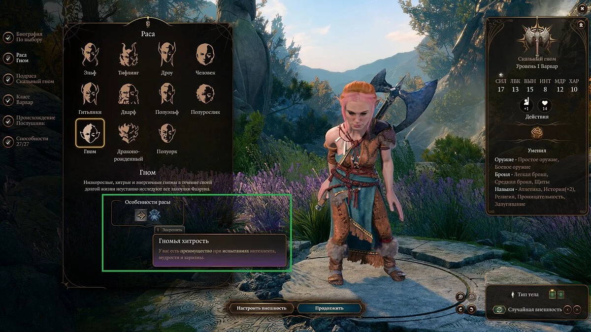 Начнём с создания персонажа. Подробно этот процесс мы разобрали в отдельном гайде, здесь же остановимся лишь на основных моментах. У каждой расы есть свои особенности и таланты, которые могут значительно повлиять на игровой процесс.