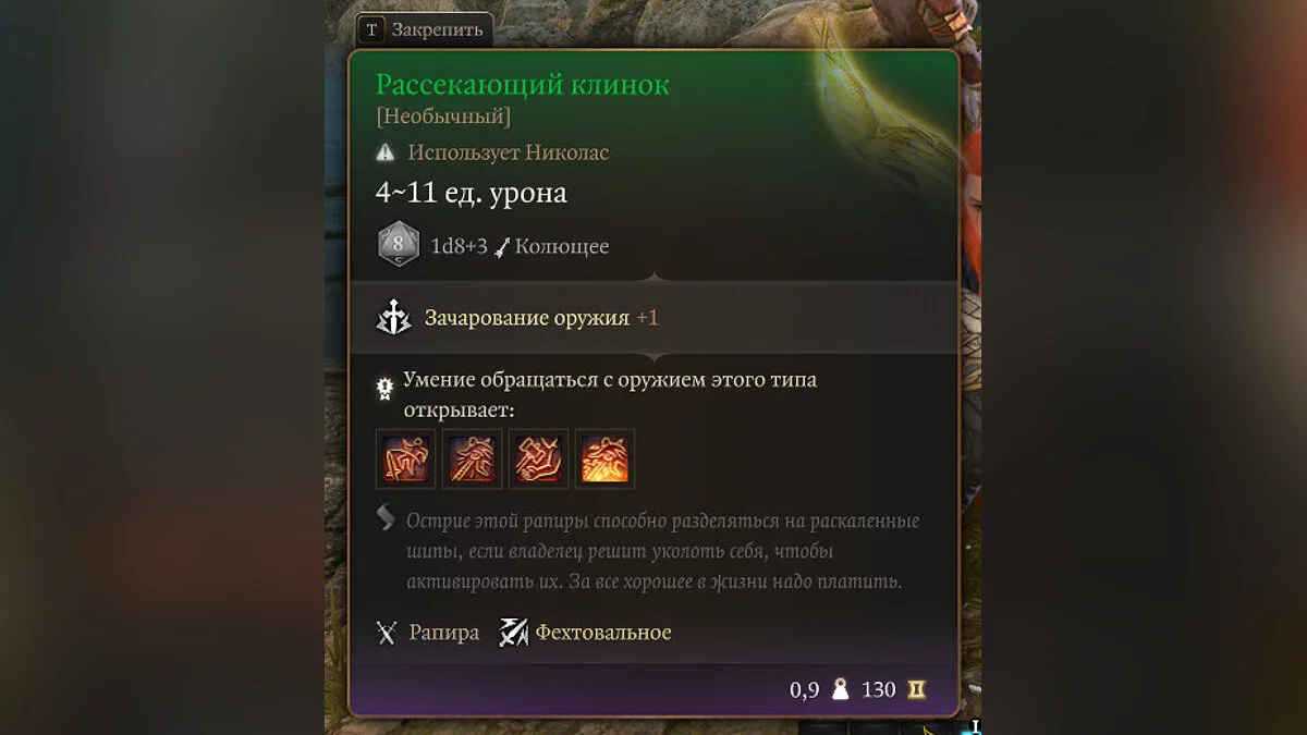 Разберем для начала сами «кубики», а затем то, как работают броски. Практически на всех предметах, оружии или способностях вы найдете приписку в стиле «Урон — от 3 до 11», а ниже — «1d8 + 3». Допустим, это пояснение для основной атаки рапирой.