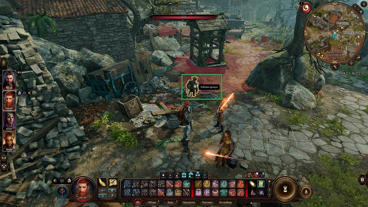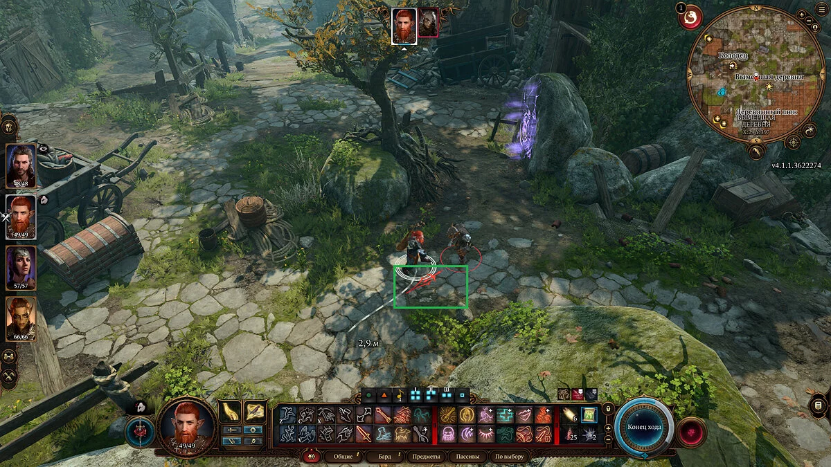 Интерфейс пусть и выглядит перегруженным, но на деле достаточно удобно сортирует все действия по требуемым затратам. Переключаясь между вкладками и наводя на действия, приемы и заклинания, вы можете увидеть, что конкретно требует тот или иной приём. Так, при игре за барда, вооруженного двумя одноручным арбалетами, вы можете отойти от врага (движение), выстрелить в одного противника (дополнительное действие), а затем применить заклинание (основное действие).