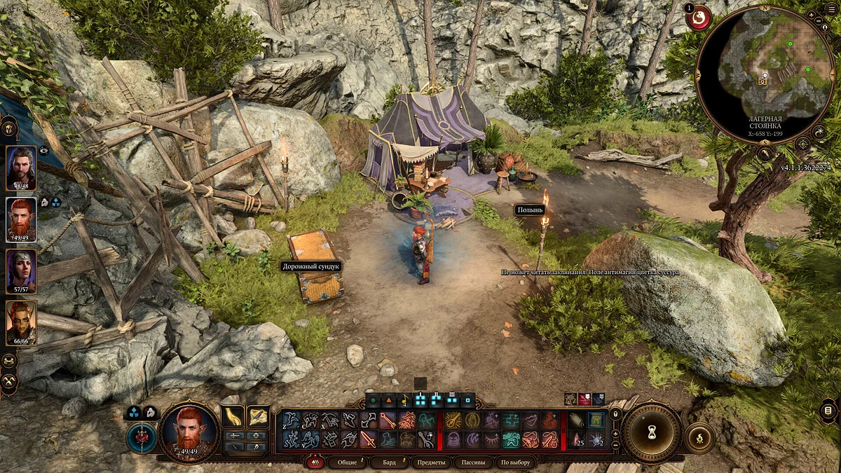 Поэтому мы советуем не сильно обустраивать лагерь в лесу, скидывая все предметы в хранилище игрока. Сам лагерь по мере развития сюжета и появления новых спутников будет становиться все более оживленным и обжитым.