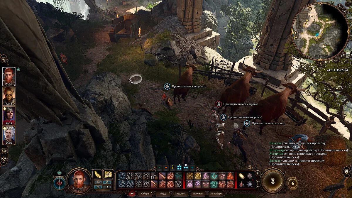 Пассивные проверки работают иначе. Они происходят в реальном времени. Если во время путешествия по миру персонаж попадает в зону действия пассивной проверки, он бросает кубик. Если внимательность или знание религии достаточно высоки, он успешно проходит проверку, а объект проверки становится доступен для взаимодействия.