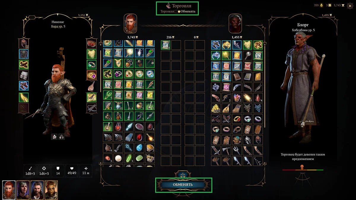 Для этого откройте окно торговли, выберите режим «Обменять» в верхнем части экрана и положите ценные предметы или золото. Затем нажмите на кнопку «Обменять» в нижней части экрана и согласитесь подарить эти предметы. Отношение торговца повысится, а цены станут более выгодными.