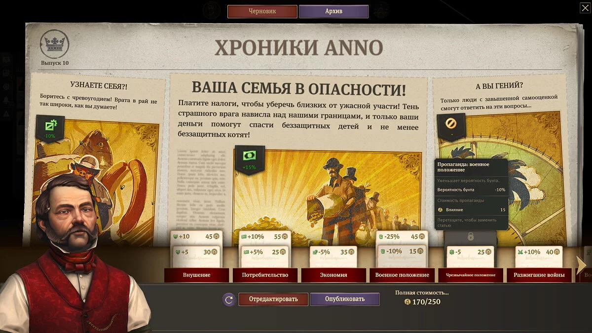 Чуть проще, но заметно шире, сама механика производства. Добавлено много активностей — экспедиции, небольшие просьбы жителей или бунты, фото для газеты. Игровой мир теперь комментирует то, что вы делаете.