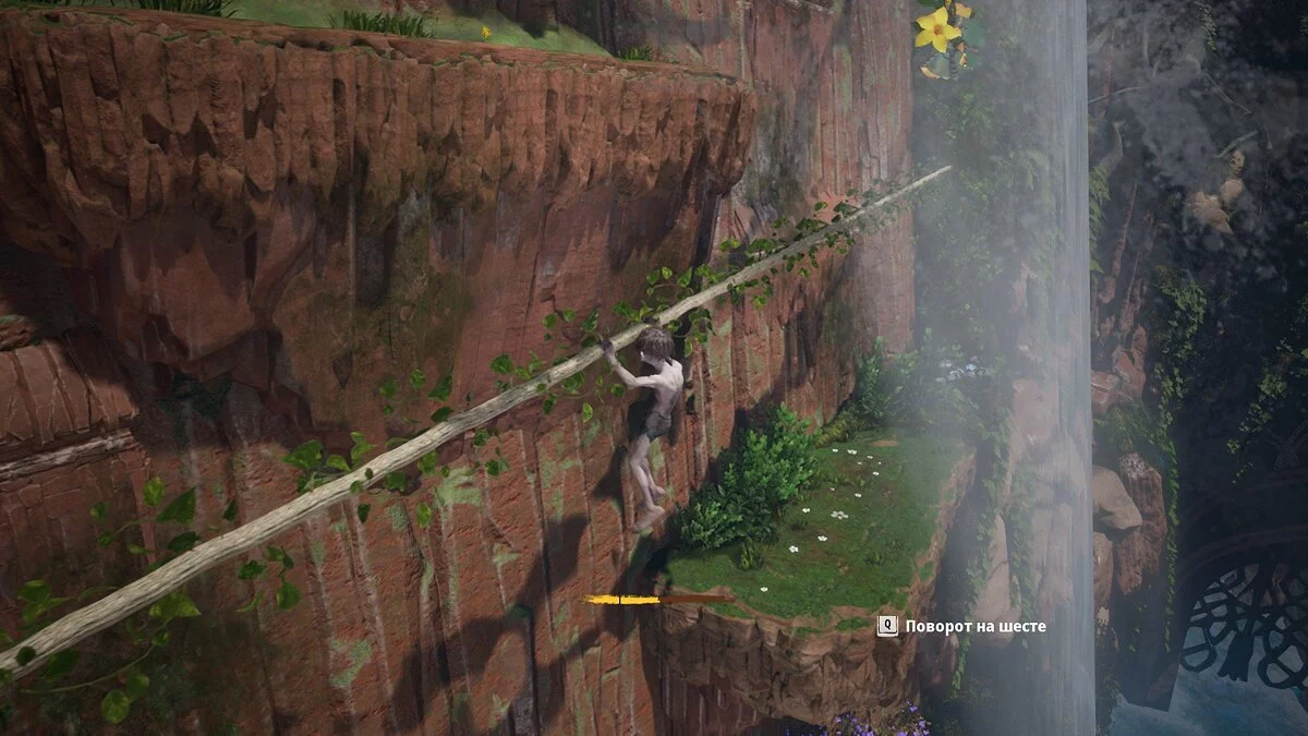 Дальше хуже. У Голлума есть отдельная кнопка для прыжка на 180°, но в момент ее нажатия нельзя трогать другие клавиши. Проблема в том, что большинство уступов, которые находятся за спиной Голлума, невозможно сходу заметить. Вот вы взбираетесь на верхушку здания и больше не видите трещин для прыжка дальше. Начинаете крутить камеру по кругу и все равно не замечаете углублений. Оказывается, выступ, за который можно уцепиться, находится за спиной героя и выше обзора камеры. То есть вам необходимо нажать кнопку прыжка с разворотом и молиться, чтобы Голлум не упал в пропасть.