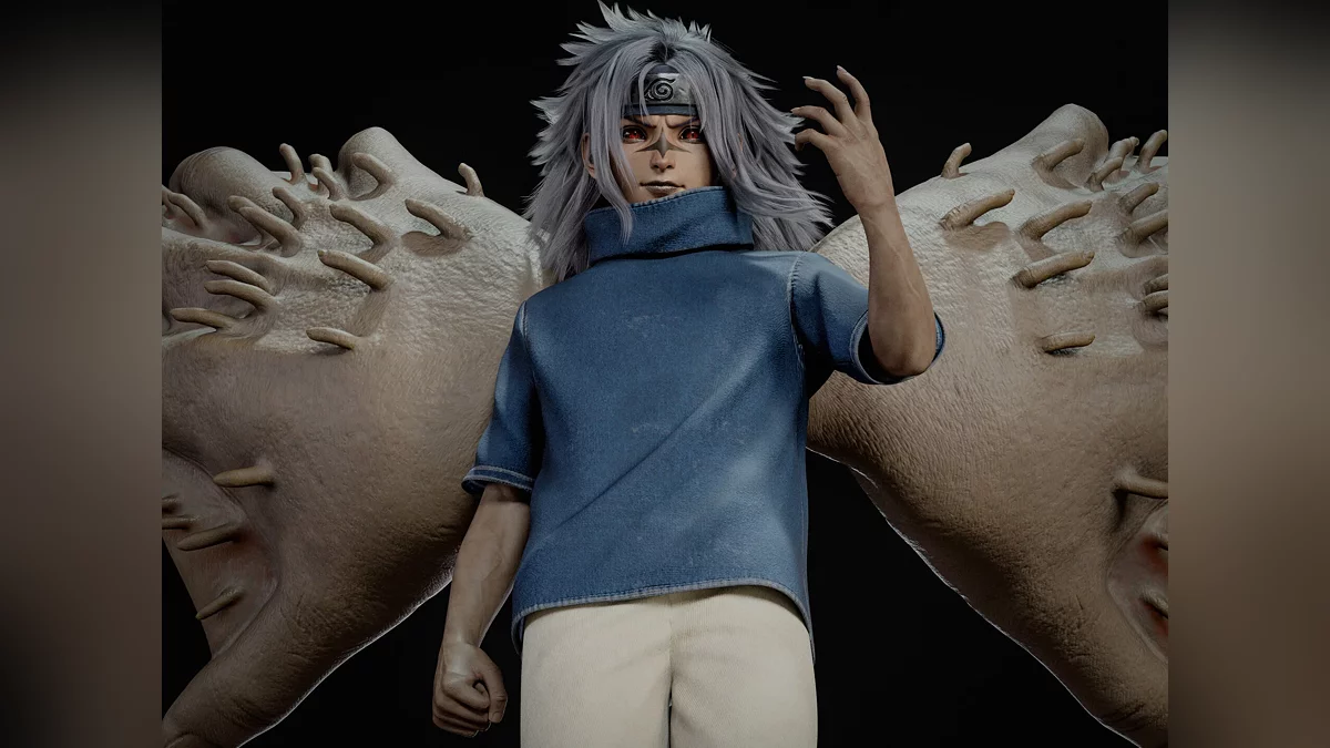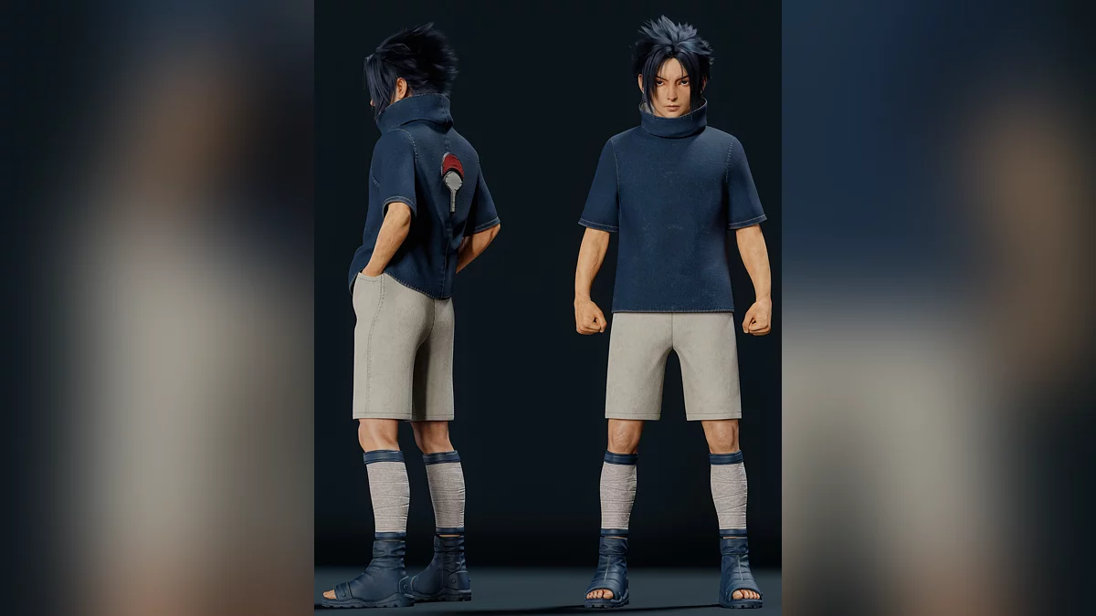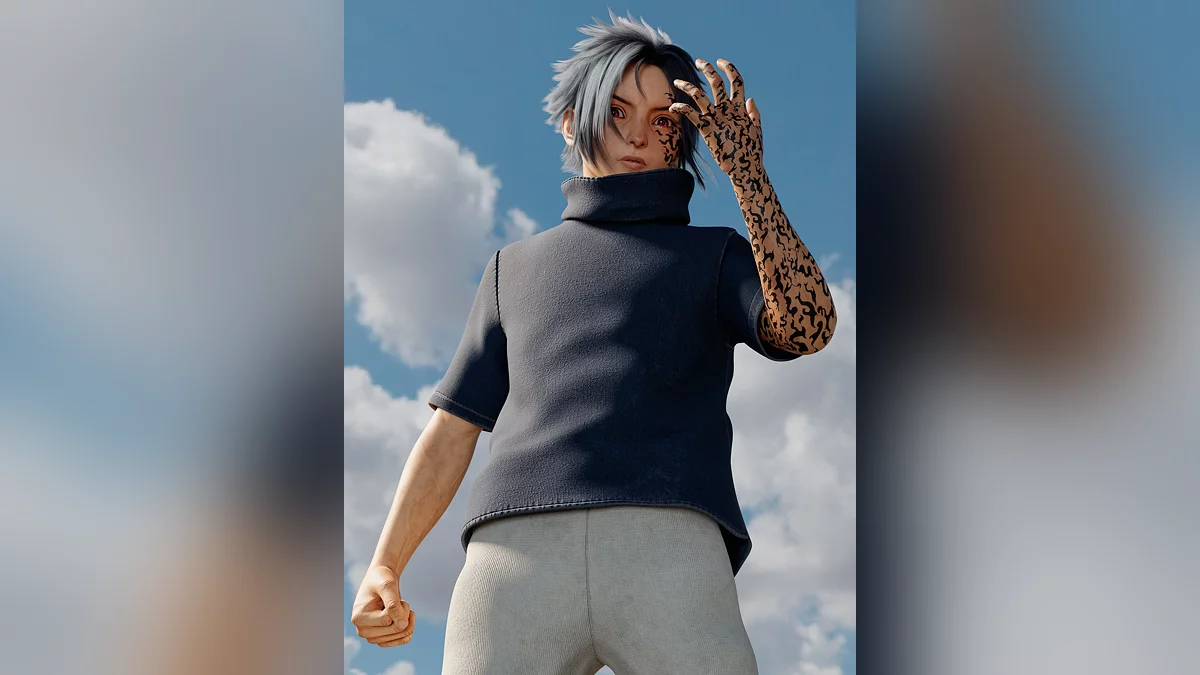 Також автор показав дві версії Наруто Удзумаки — звичайну і з пробудженим Кьюбі. Художник зобразив його в бою з Саске, який розкрив весь потенціал проклятої печатки Орочімару.