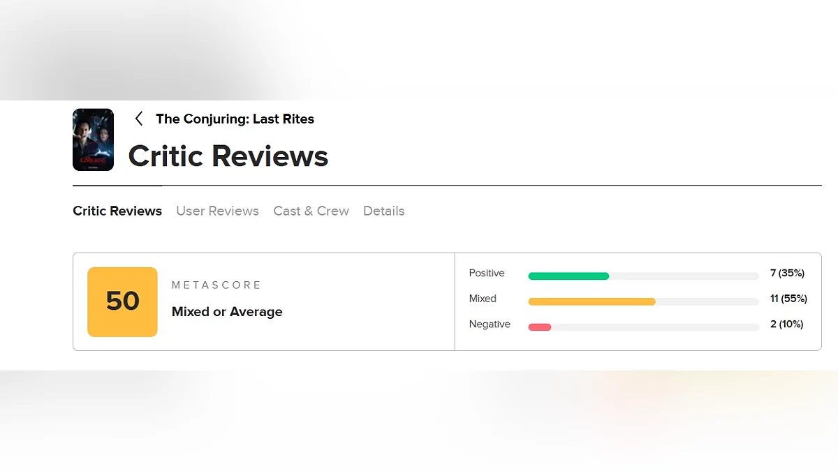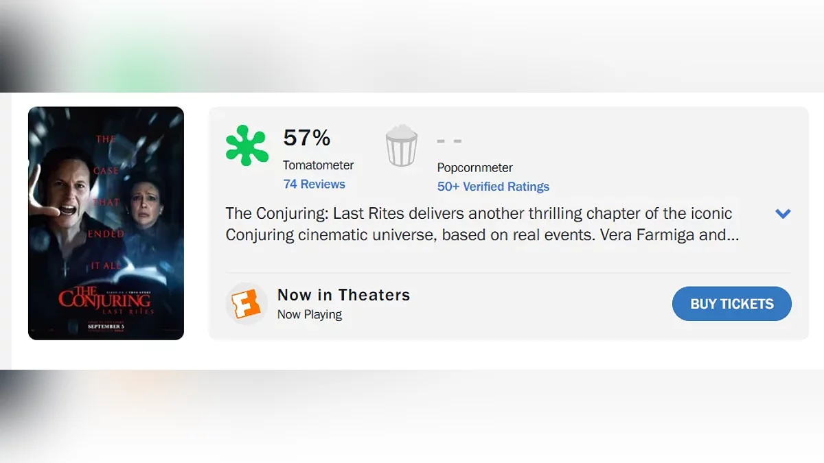 Совсем недавно відбулася прем'єра фільму жахів «Закляття 4: Останній обряд», який вже отримав відгуки критиків. На Metacritic у кіноленти 50 балів, а на Rotten Tomatoes рейтинг становить 57%.