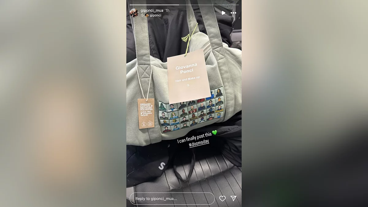 Зображення було опубліковано художником по спецефектам і гриму Джі Пончи Муа (Gi Ponci Mua). Подібні сумки отримала знімальна команда на честь закінчення основних зйомок фільму, які нещодавно завершилися у Великій Британії. Тут же можна оцінити зовнішній вигляд персонажів «Судного дня»: Тор отримав коротку стрижку та темний костюм, як у «Рагнареку» та «Війні Нескінченності», Локі постає у своєму фінальному образі з власного серіалу, а Люди Ікс, такі як Циклоп, Професор Ікс та Містик, облачилися в канонічні наряди з коміксів.