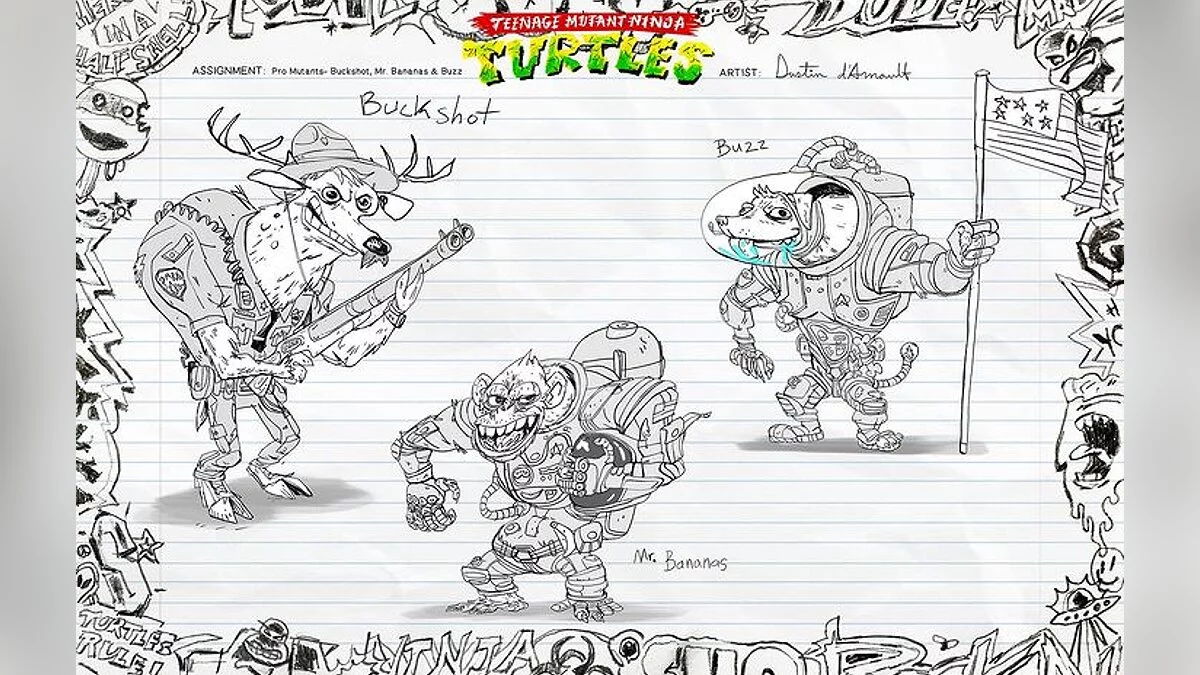 Художник Максим Мэри (Maxime Mary) опубликовал новые концепт-арты мультфильма «Черепашки-ниндзя: Погром мутантов» с демонстрацией ранних версий четырёх главных героев и Сплинтера.