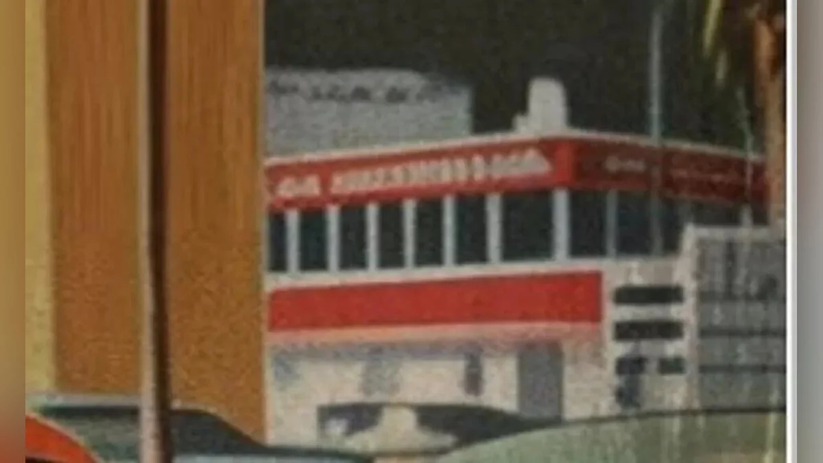 У здания справа нет окон, а рядом с ним соседствует пальма-великан: