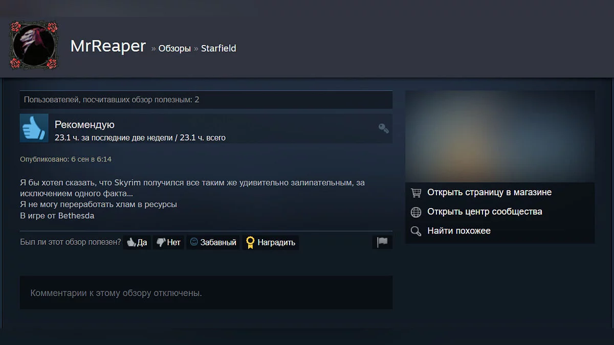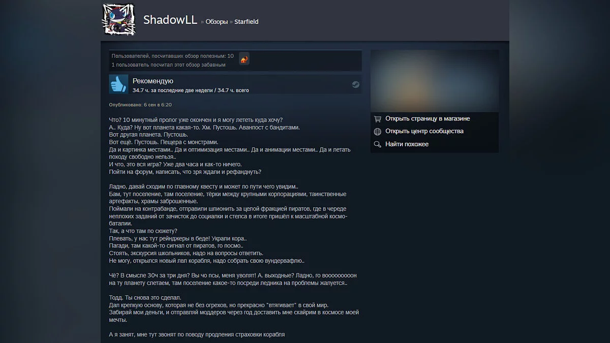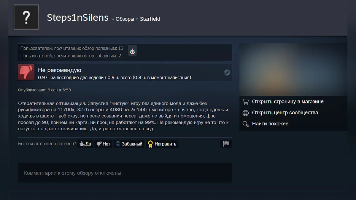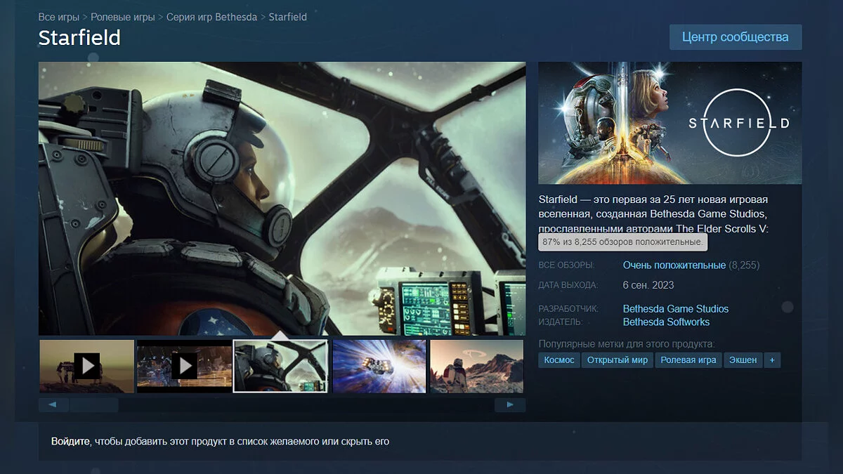 Состоялся полноценный релиз Starfield. Геймеры в Steam оставили первые отзывы