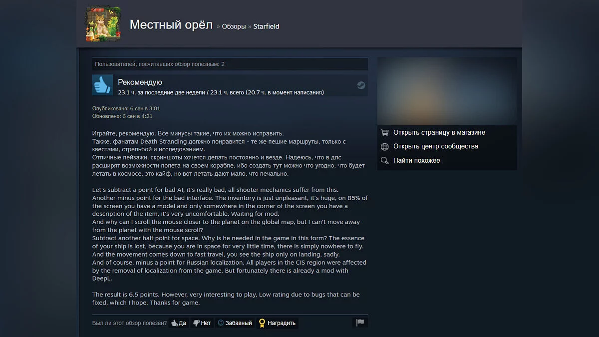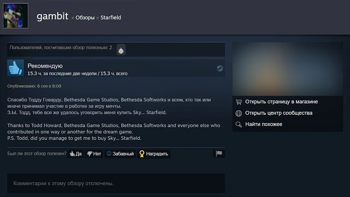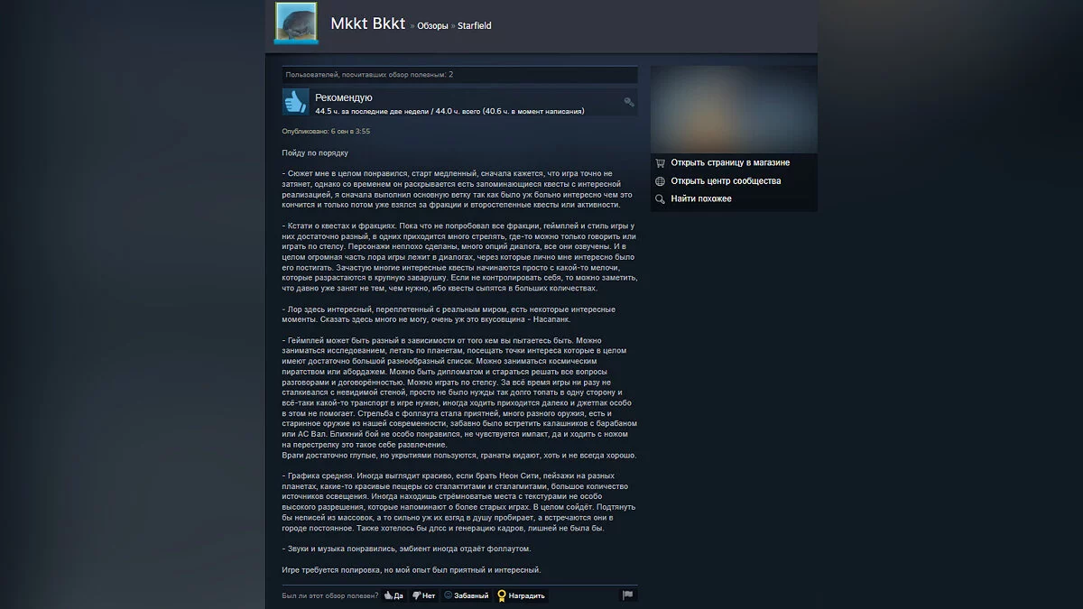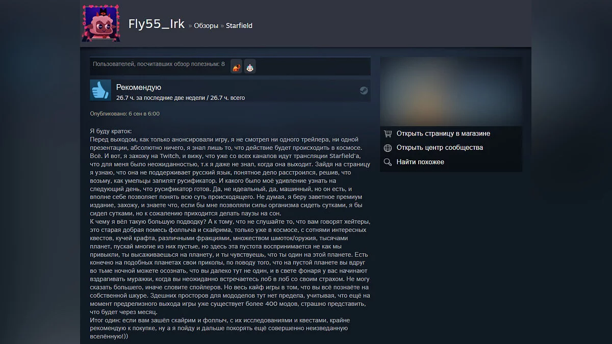 Состоялся полноценный релиз Starfield. Геймеры в Steam оставили первые отзывы
