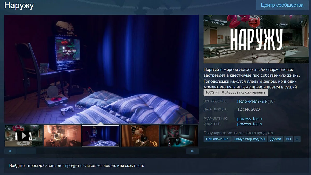 В Steam вышла необычная приключенческая игра от первого лица под названием «Наружу», действие которой «разворачивается в постсоветском сеттинге 1990-2010 годов». Она доступна совершенно бесплатно. Первые отзывы от геймеров — положительные.