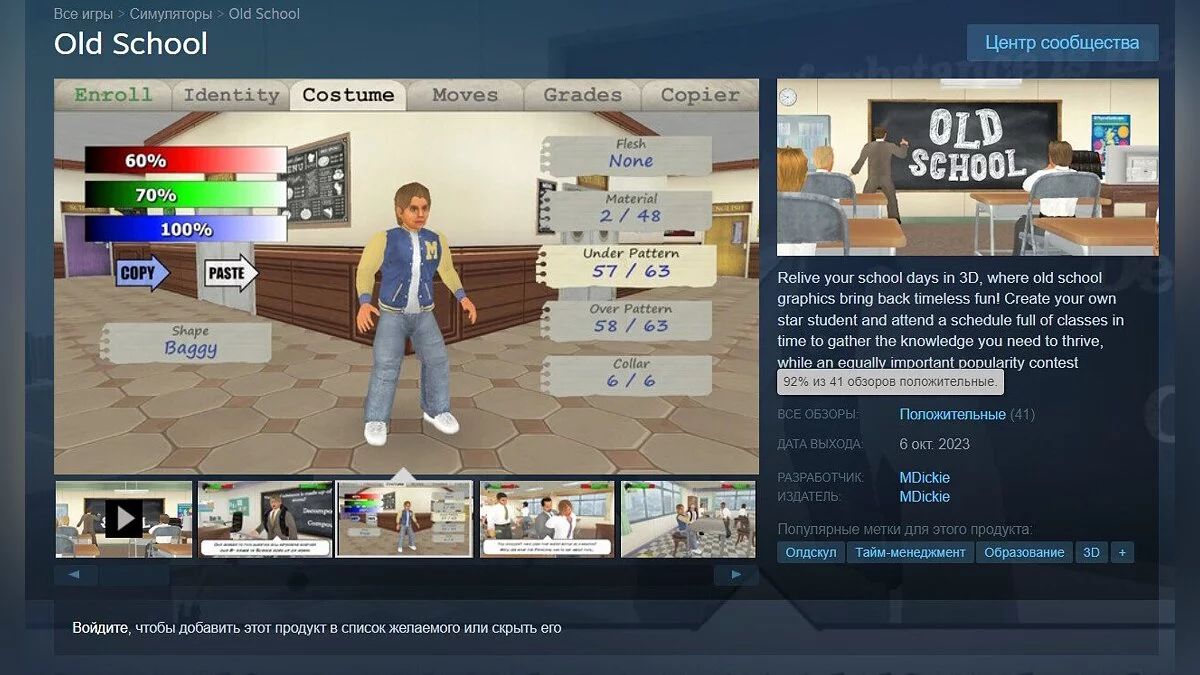Независимая студия MDickie выпустила в Steam трехмерный симулятор школьника под названием Old School, который уже успел получить высокий рейтинг. На момент написания новости проект имеет 92% положительных отзывов.