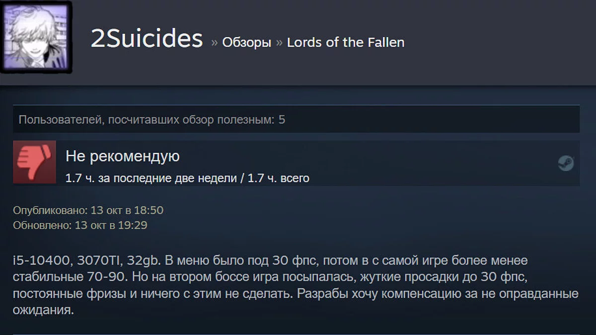 Игроки громят рейтинг Lords of the Fallen в Steam из-за оптимизации