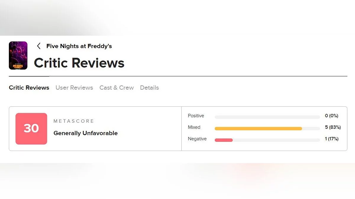 В Великобритании состоялась премьера ужастика «Пять ночей с Фредди», который основан на популярной серии игр Five Nights at Freddy's. Кинолента уже получила первые оценки от прессы на Metacritic.