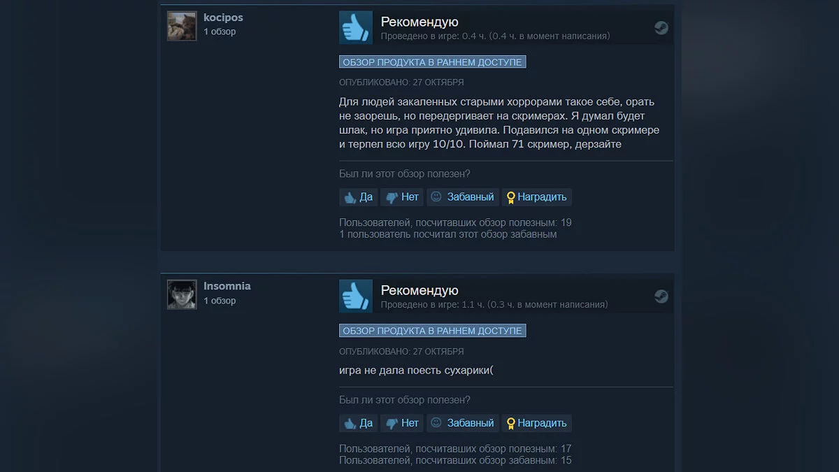 «Эта игра идеально подходит для того, чтобы как следует напугать ваших друзей и родственников. Наша главная тестировщица (а также моя жена) вынуждена восстанавливаться в лечебнице», — заявил разработчик.
