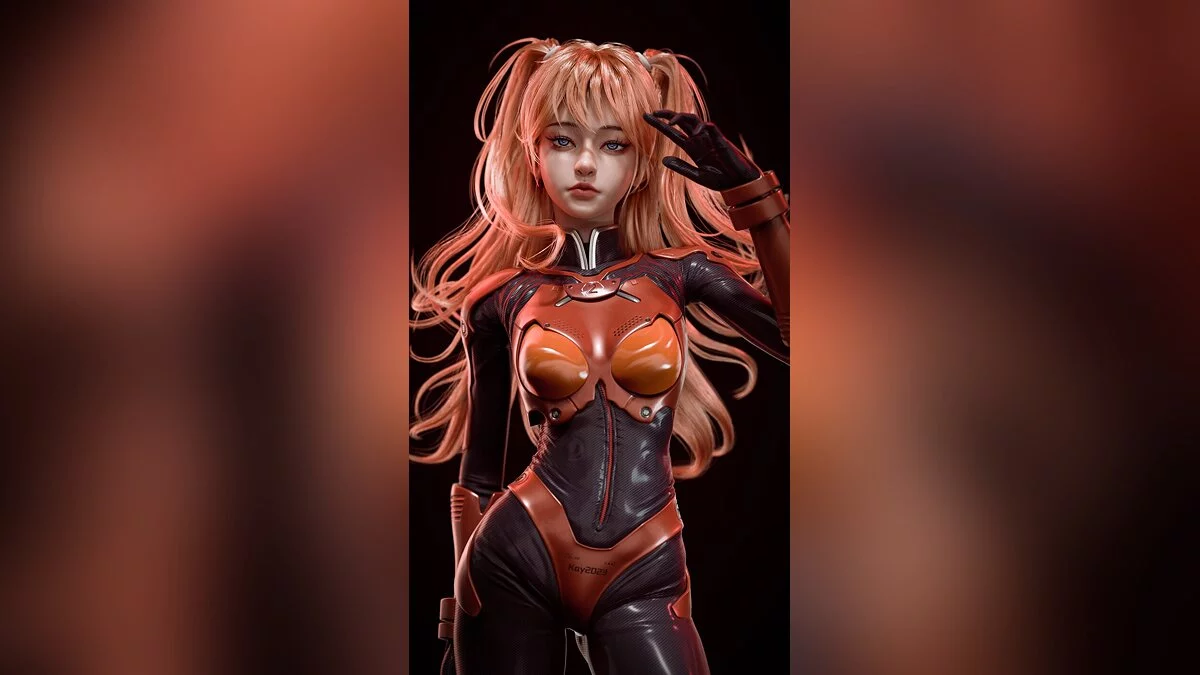Китайский художник JueFei Kay20000 при помощи программы Blender создал реалистичную трёхмерную модель Аски Лэнгли Сорью, одной из главных персонажей аниме и манги «Евангелион». Так, по мнению автора, могла выглядеть известная героиня, если бы была реальной девушкой.