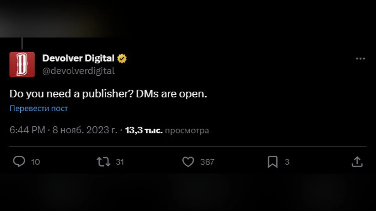 На анонс также отреагировали популярные компании. Devolver Digital, к примеру, предложила выступить издателем игры.