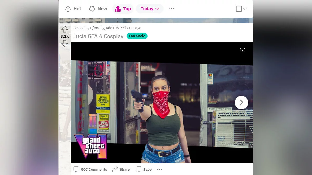 Реддиторша Boring-Ad8105 решила закосплеить одного из главных героев GTA 6. Девушка опубликовала на Reddit пять фотографий, где показала себя в образе Люсии, бывшей заключенной латиноамериканки. Пост с её косплеем попал в топ на сабреддите шестой Grand Theft Auto.