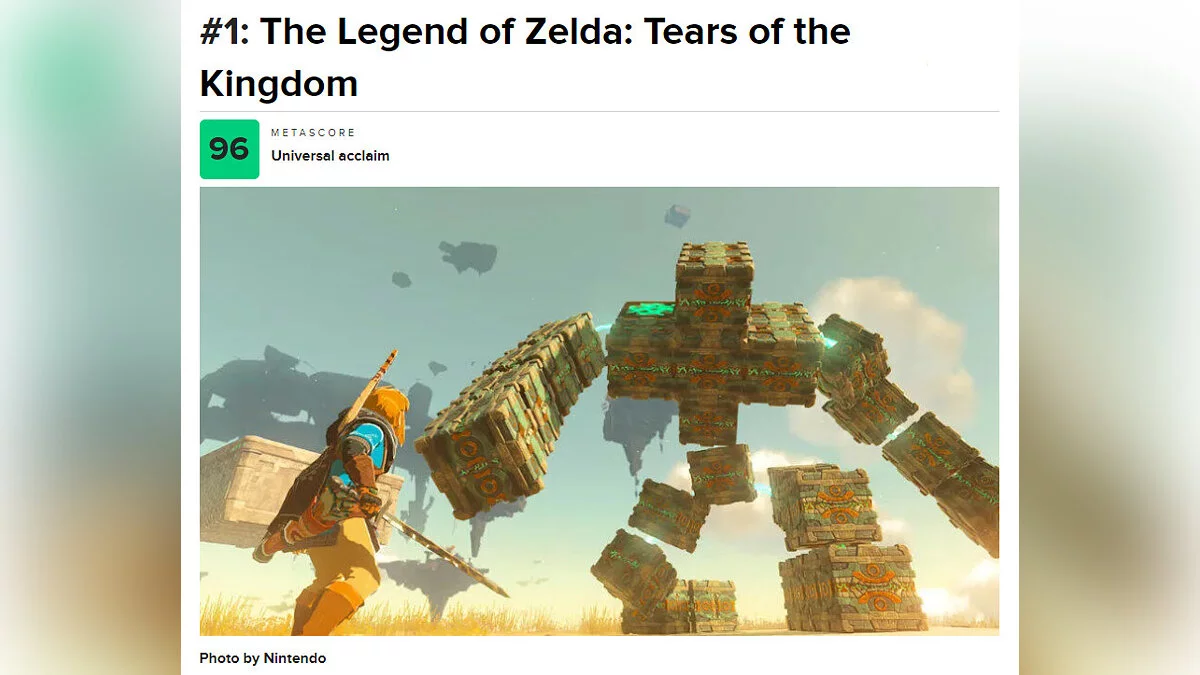- The Legend of Zelda: Tears of the Kingdom — 96/100 баллов;
