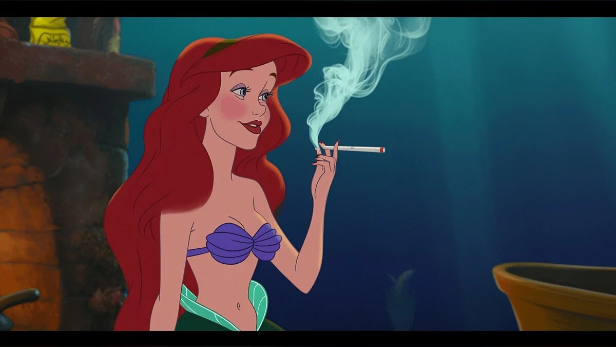 Пользователь с ником fAIkout попросил искусственный интеллект (нейросеть Midjourney) нарисовать альтернативную версию культового мультика «Русалочка», в котором Ариэль вместо примерной девушки стала преступницей.
