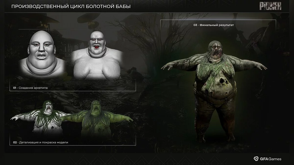 Авторы Pioner продемонстрировали производственный цикл ещё одного мутанта. В прошлый раз они познакомили игроков с Адской гончей, а теперь показали процесс разработки Болотной бабы.