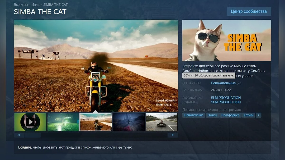 В Steam на полностью бесплатную модель распространения перешла необычная игра под названием Simba The Cat, которая вышла в 2022 году и продавалась за 360 руб. На текущий момент проект имеет рейтинг 80%.