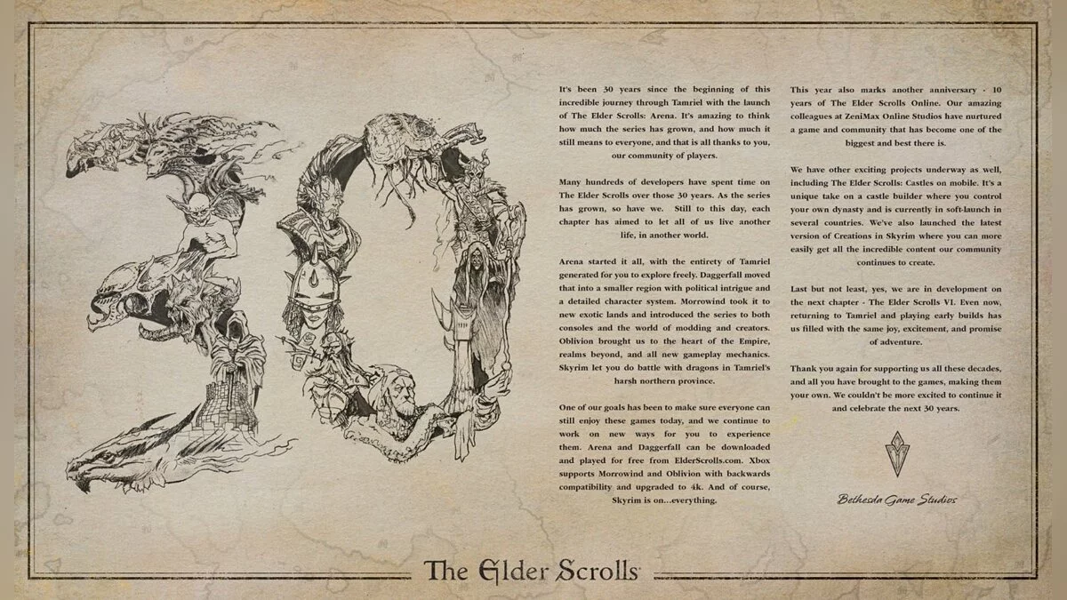 Серии The Elder Scrolls, а вместе с ней оригинальной The Elder Scrolls: Arena исполняется 30 лет! По этому случаю Bethesda опубликовала большое послание фанатам, где в том числе поговорила о будущем «Древних Свитков».