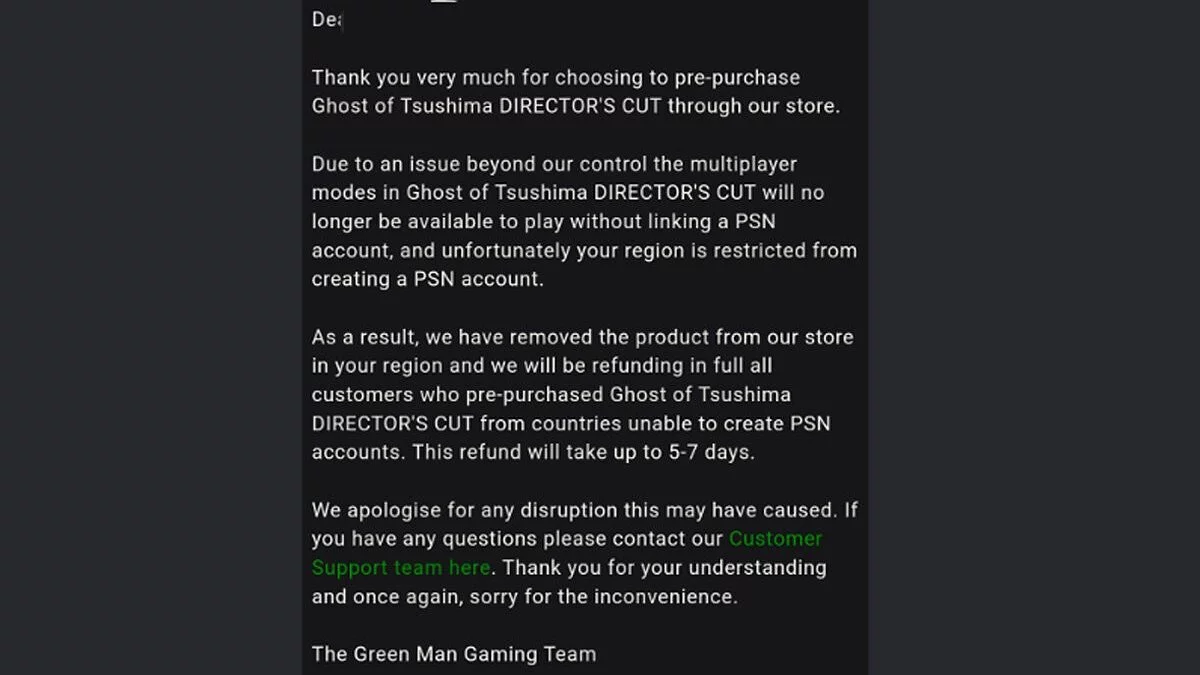 Игрок на Reddit поделился письмом от магазина ключей Green Man Gaming, в котором сообщается следующее: