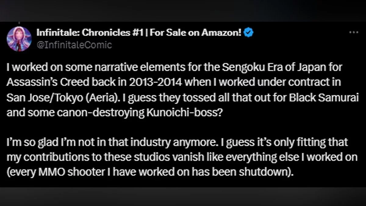 На волне анонса Assassin's Creed: Shadows один из бывших сценаристов Ubisoft с ником @InfinitaleComic решил рассказать детали сюжета об ассасинах в Японии, который разрабатывался в студии в 2013–2014 годах. Он более соответствовал эпохе и придерживался реальных исторических событий периода Сэнгоку.