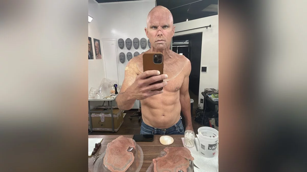 Создатели сериала Fallout отметили (пускай с небольшим опозданием) старт летнего сезона и по этому случаю выложили пару эксклюзивных фотографий из гримерки. На них можно увидеть, как актера Уолтона Гоггинса (Walton Goggins) превращали в Гуля.