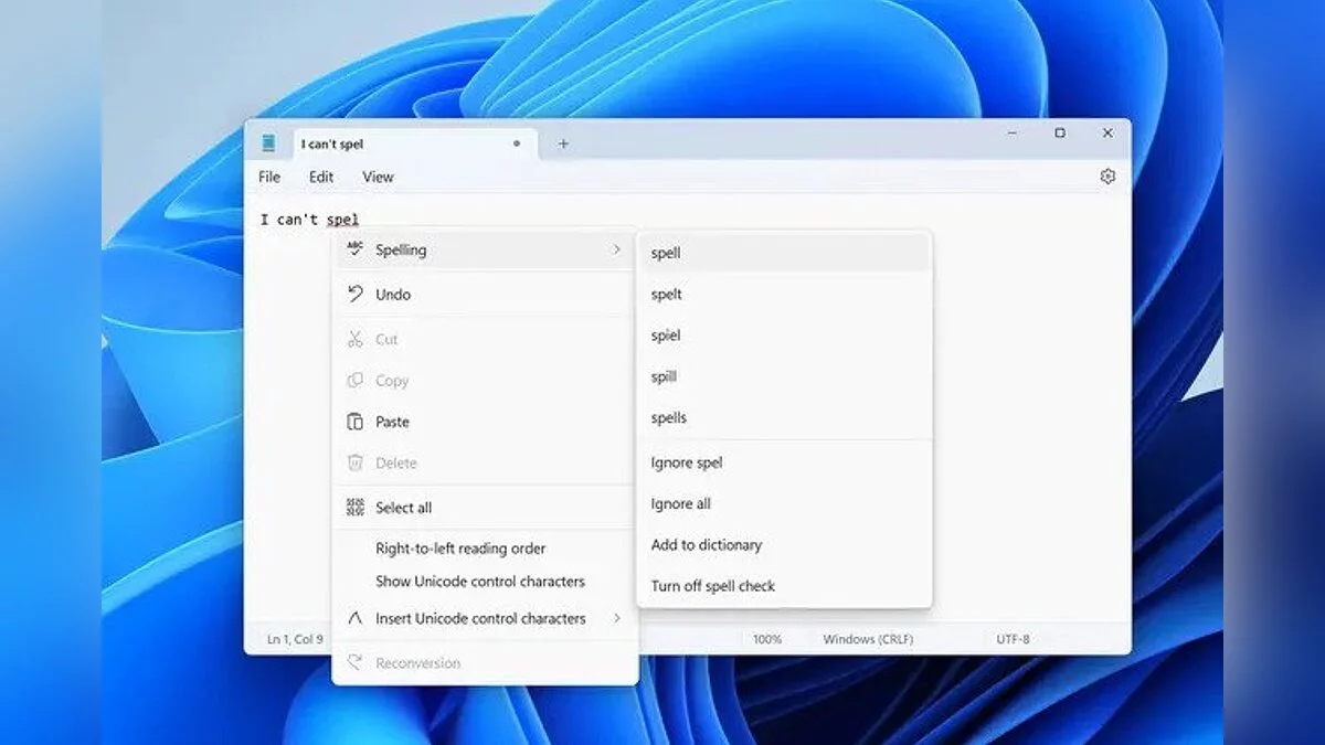 Microsoft спустя 40 лет добавила в «Блокнот» проверку орфографии и автозамену