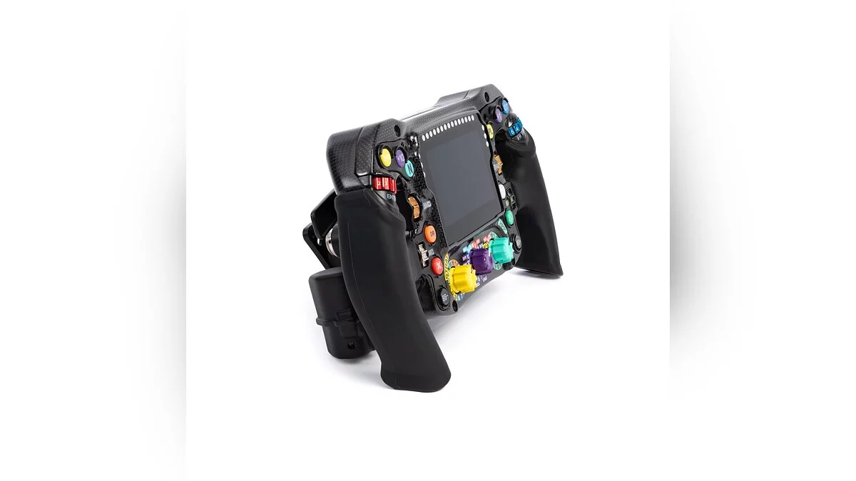 Руль выполнен в углеволоконном корпусе ручной работы, что обеспечивает его легкость (всего 1240 грамм) и высокую жесткость. Это позволяет максимально точно передавать вибрации и сопротивление от колесной базы к рукам игрока. На руле расположены девять поворотных ручек, 12 кнопок, два тумблера и подрулевые переключатели передач, а также антистатические держатели из силиконовой резины и 25 RGB-светодиодов для вывода телеметрической информации. В центре руля установлен 4,3-дюймовый ЖК-экран, отображающий данные, соответствующие интерфейсу для пилотов команды Mercedes F1.