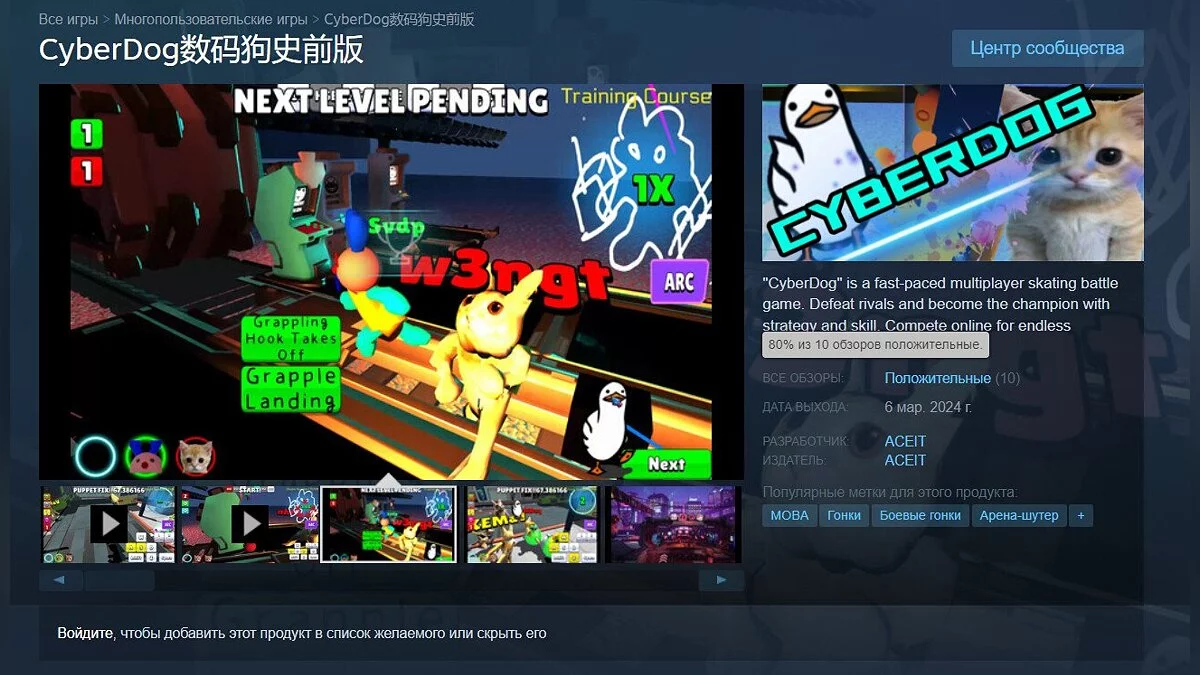 На момент написания новости игра имеет положительные отзывы (рейтинг 80%). Добавить CyberDog в библиотеку можно здесь.