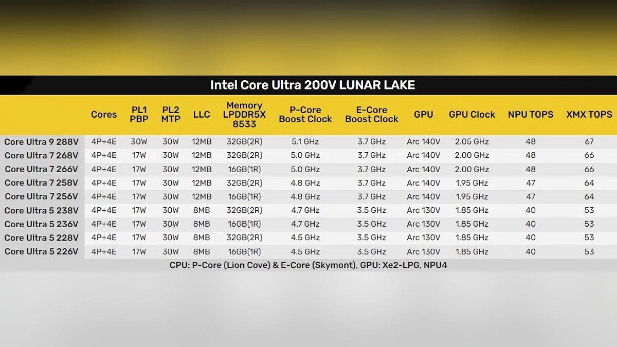 Презентация Lunar Lake станет значимым событием в индустрии, обещая прорыв в энергоэффективности, вычислительной и графической производительности, а также ИИ-потенциале. Ожидается, что в серии Core Ultra 200V будут представлены до 9 моделей процессоров с уникальными характеристиками: от частоты и объема встроенной оперативной памяти до производительности нового NPU и графических ядер на архитектуре Xe2-LPG.