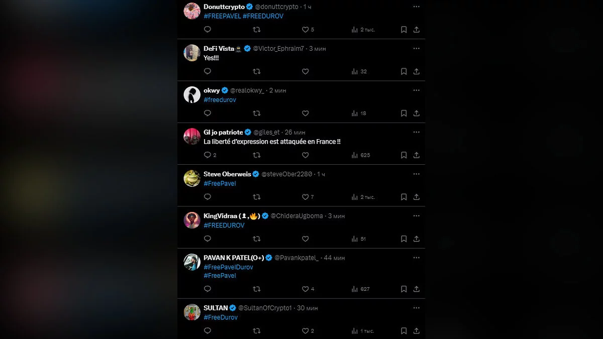 За час публикация собрала уже более 2,5 миллиона просмотров. Пользователи присоединились к сообщению Илона Маска, начав массово оставлять в комментариях хэштеги с призывом освободить создателя Telegram.