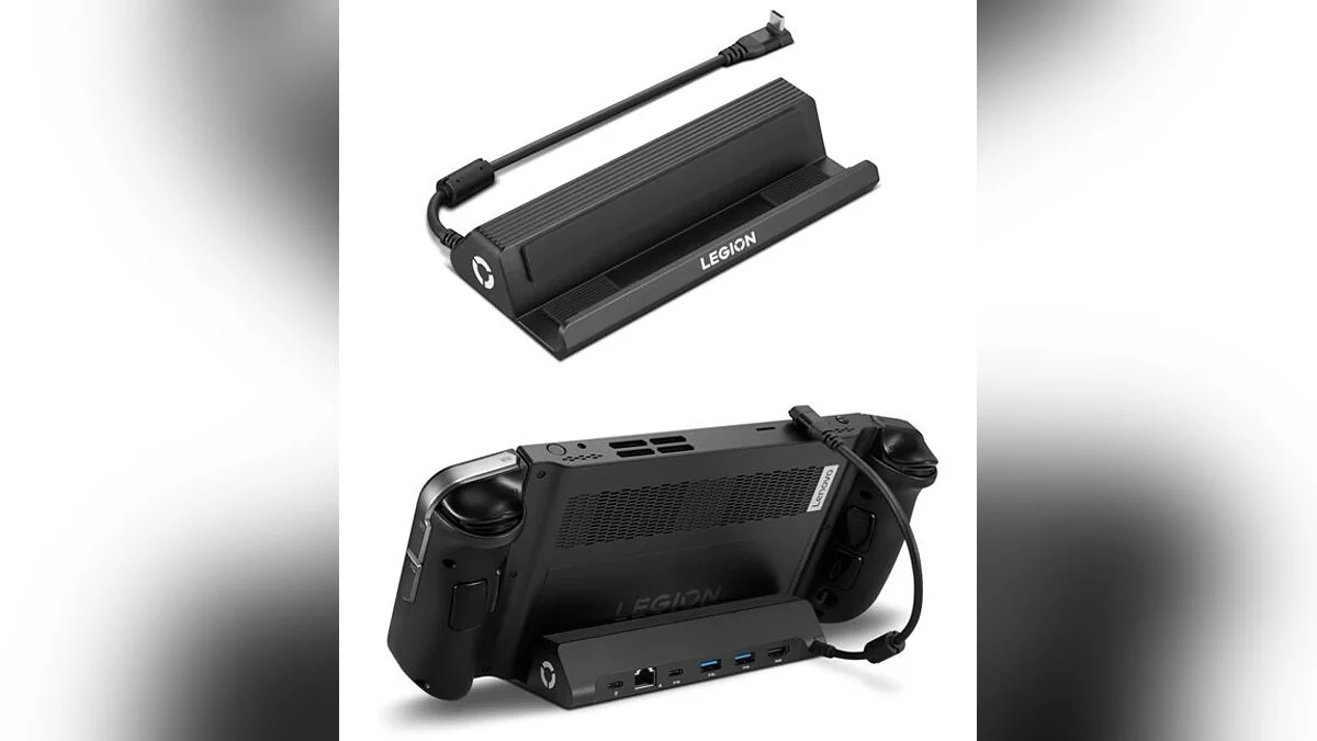 Док-станция для Legion Go позволяет использовать консоль как стационарное устройство, предлагая различные разъемы для подключения периферии: HDMI 2.0, Ethernet и два порта USB 3.0 (Type-A и Type-C). Один из Type-C портов поддерживает быструю зарядку мощностью до 100 Вт, что позволяет заряжать другие устройства.