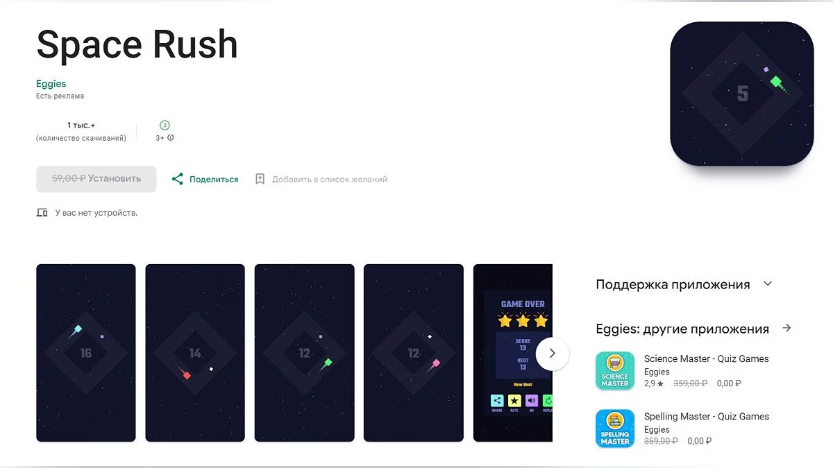- Space Rush — аркадная игра с геймплеем, который призван проверить реакцию и рефлексы игрока (загрузить бесплатно);