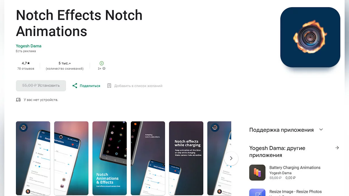 - Notch Effects Notch Animations — программа, позволяющая дополнить вырез фронтальной камеры красивыми визуальными эффектами (загрузить бесплатно).