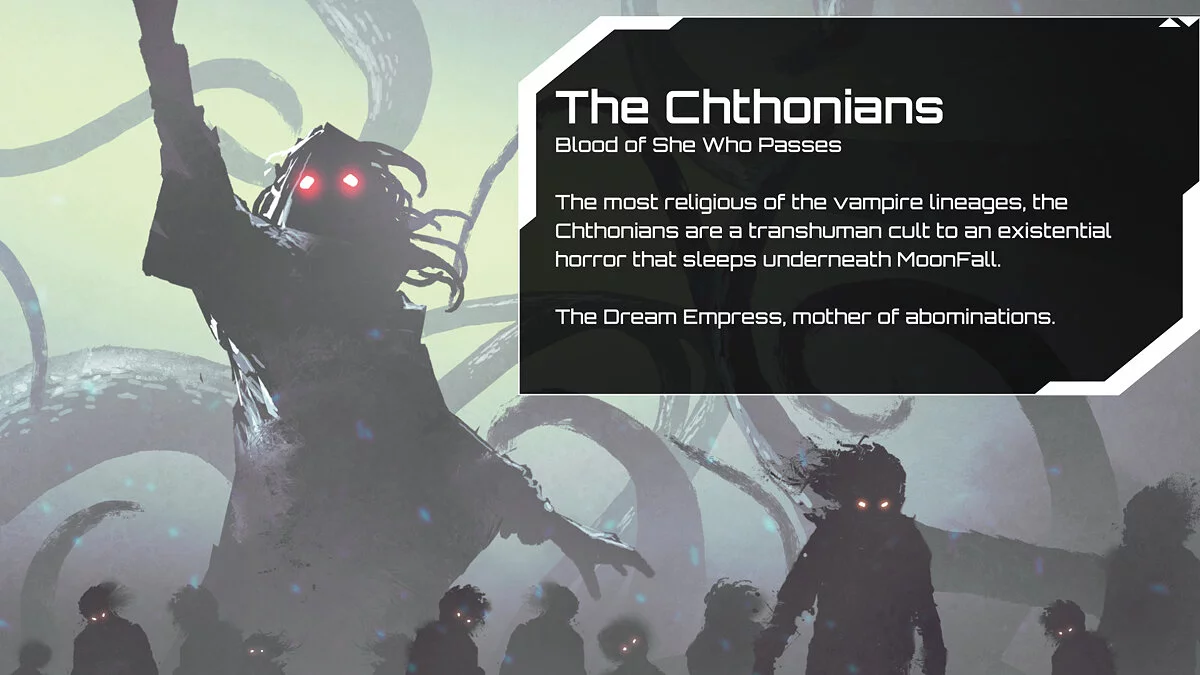 A Memory of Eternity LLC представила рольову гру Vampire Syndicate: Gangs of MoonFall, яка перенесе геймерів у кіберпанковий сеттинг, де орудують банди вампірів. В мережі є перші кадри геймплею демоверсії.