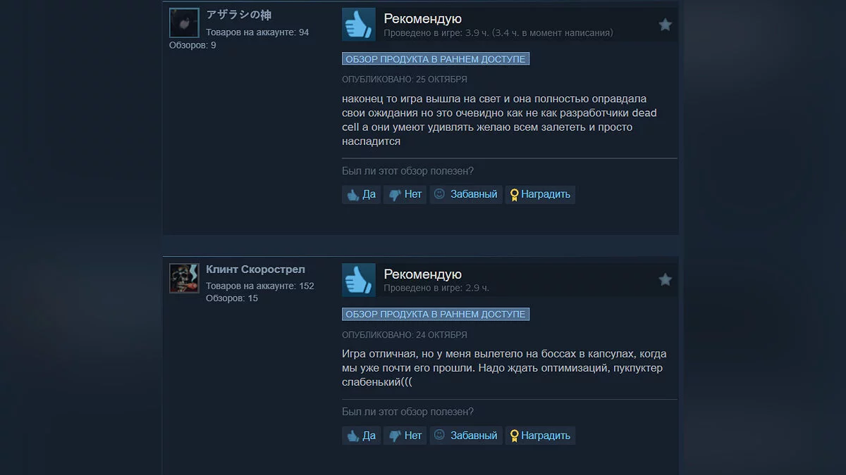 «Дійсно шедевральна гра» і «Виправдала очікування» — в Steam геймери вже оцінили новий екшен від творців Dead Cells