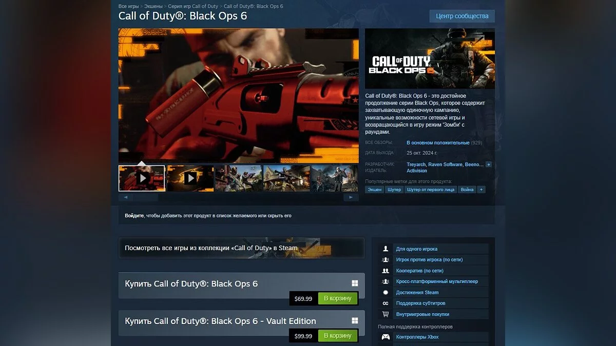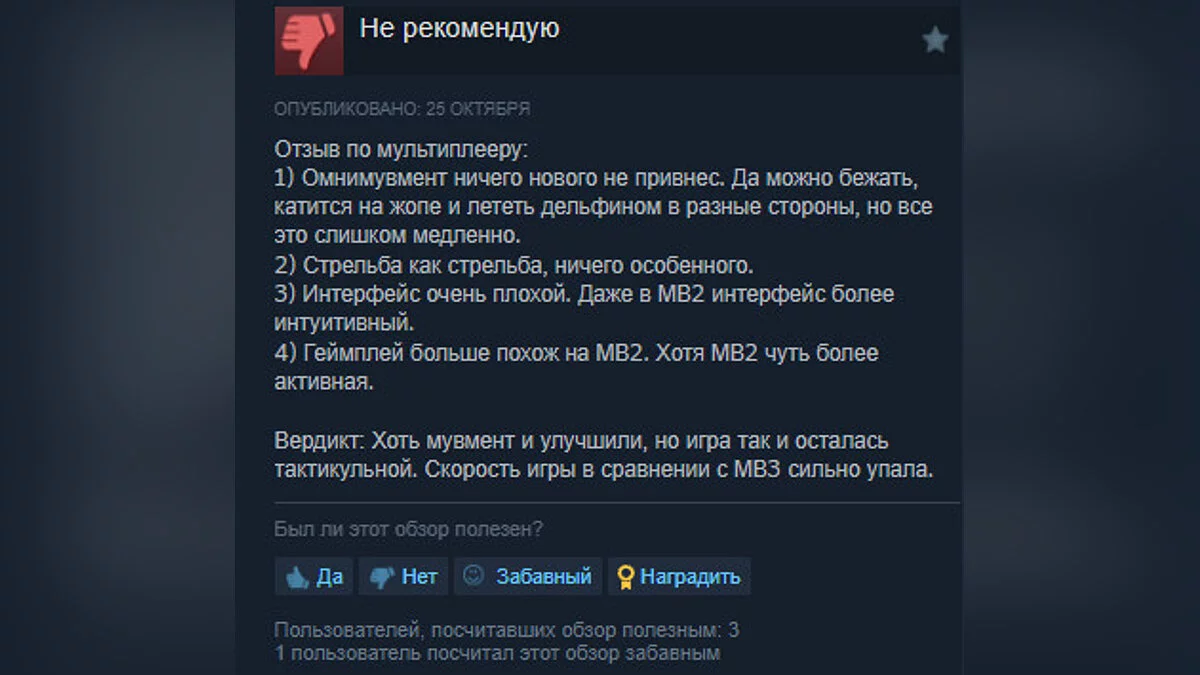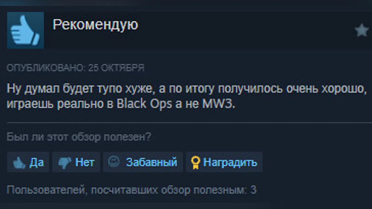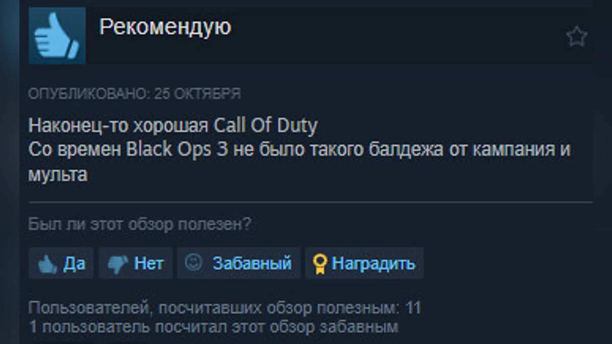 Недолікам місце теж знайшлося. Судячи з відгуків, навіть у одиночній кампанії потрібне стабільне підключення до інтернету, через що гравці часто стикаються з вильотами. Також фанатам не сподобався новий інтерфейс і досить середній рівень оптимізації. Тим не менш, на момент написання новини у Call of Duty: Black Ops 6 у Steam 73% позитивних оцінок.