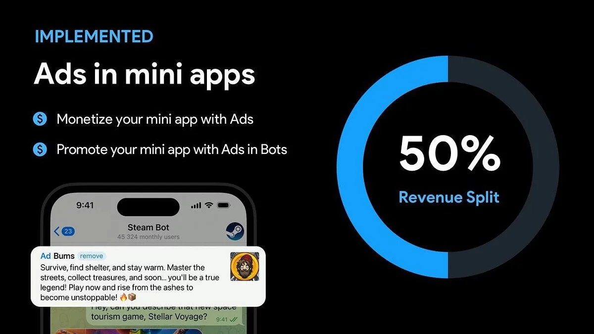 Всього з'явиться десять нових функцій. За словами Павла Дурова, таким чином розробники зможуть створювати десятки нових міні-додатків і ігор для месенджера. Схоже, що Telegram повільно перетворюється на повноцінну платформу.