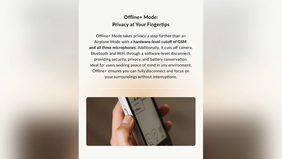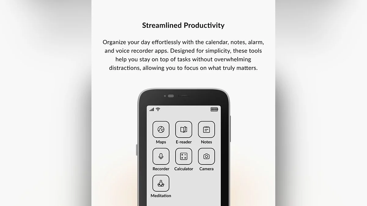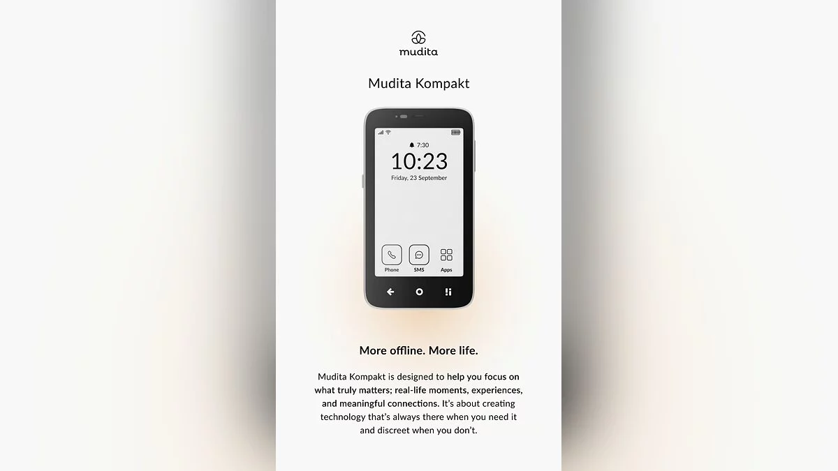 Mudita Kompakt є мінімалістичним пристроєм з «паперовим» екраном на електронних чорнилах. Смартфон працює на операційній системі MuditaOS K, яка, за словами розробників, захищає від стеження, крадіжки даних і безладу. Новинка підтримує автономний режим, який відключає відстеження та мікрофони, має роз'єми під дві SIM-карти, бездротову зарядку та сканер відбитків пальців. При цьому він позбавлений доступу до соцмереж і інтернету. Як зазначено в блозі компанії та на Kickstarter, смартфон підходить для тих, хто хоче позбутися інтернет-залежності, зберегти дані в безпеці та привести концентрацію в норму.