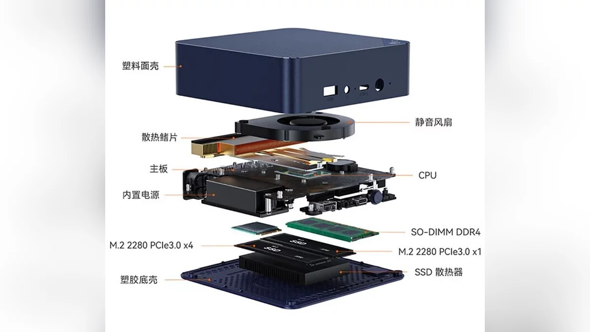 У своєму базовому вигляді міні-ПК оснащений процесором Intel N150, що має чотири ядра і чотири потоки з частотою 3,6 ГГц і енергоспоживанням у 6 Вт. Вбудована графіка на 24 виконавчих блоках (EU) працює на частоті 1 ГГц. У порівнянні з моделлю Intel N100, новий чип має вищу продуктивність завдяки збільшеній тактовій частоті та покращеній графічній підсистемі.